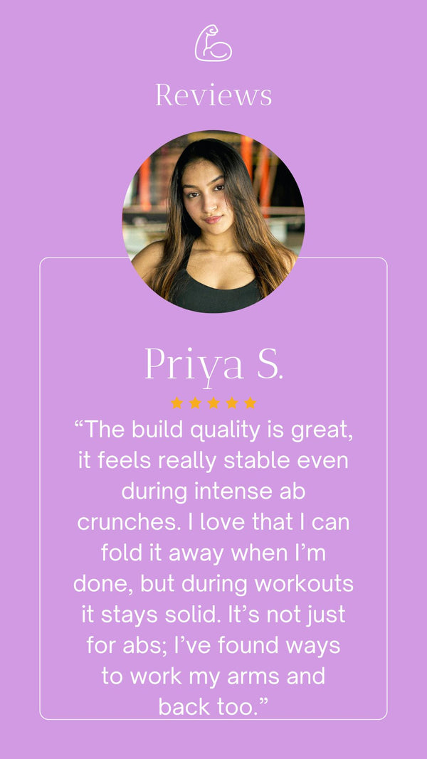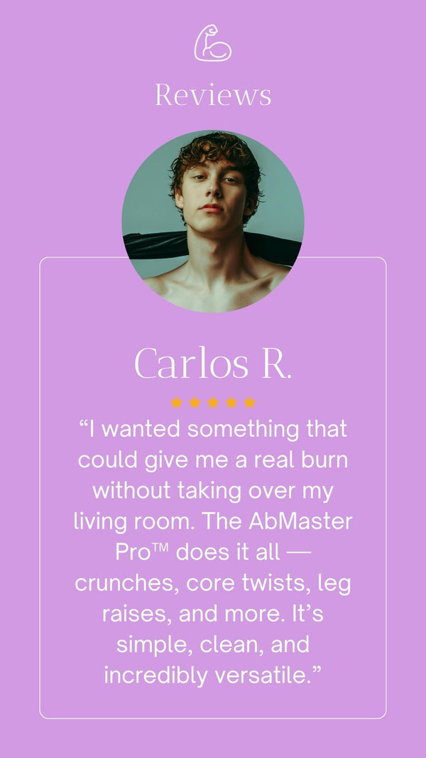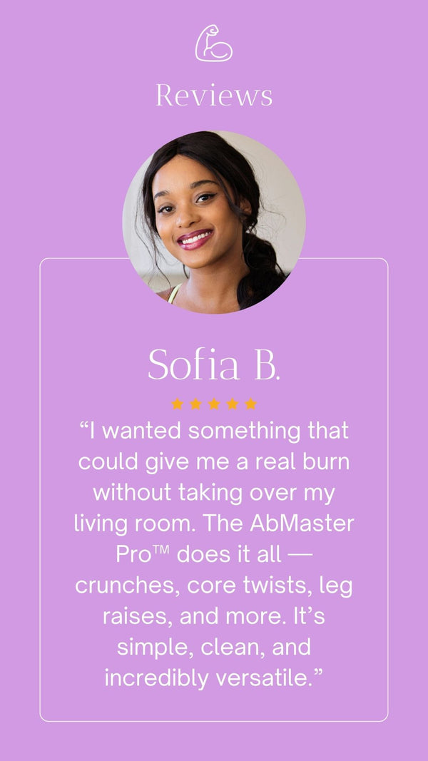 “I’ve tried so many ab workout machines, but nothing compares to the AbMaster Pro™. It’s so versatile — I use it for abs, core, arms, and even quick warm-ups. It’s sturdy, smooth, and folds away in seconds, which is perfect for my small apartment. After just a few weeks, I can already see definition in my core. Total game changer for my home workouts!”