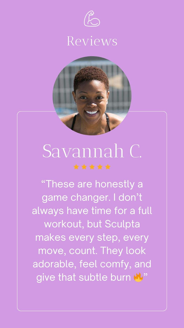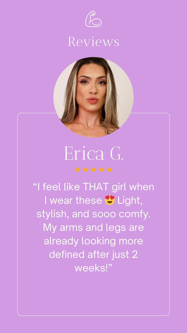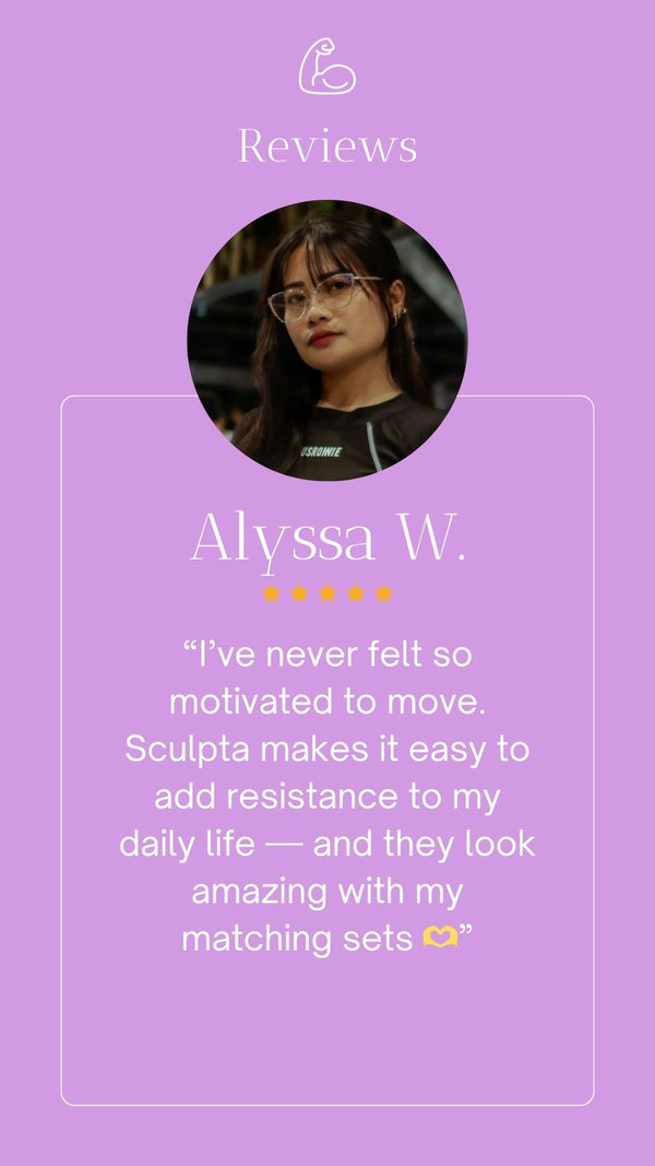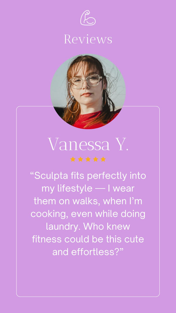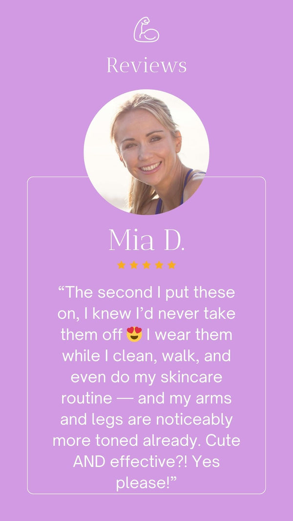 “I’ve been using Sculptas for just 3 weeks and WOW — I feel stronger, more toned, and I love how cute they look with every outfit 😍 The soft silicone makes them so comfortable, I forget I’m even wearing them! I use them during walks, cleaning, and workouts — it’s like a stylish secret weapon for sculpting my body. 10/10 recommend!!”